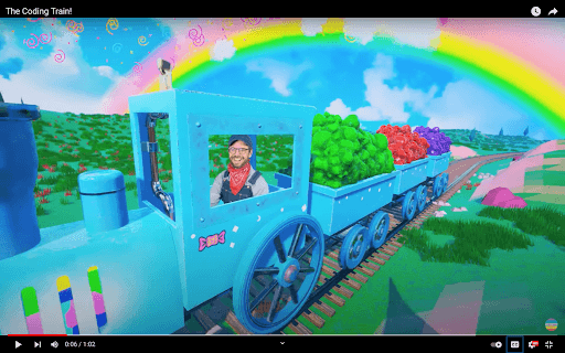 The Coding Train is a community welcoming beginner programmers and code-curious individuals to try their hand at expressing themselves with code. Started by Dan Shiffman in 2015, YouTube channel provides online educational content as sequenced and one-off video tutorials, and live streaming events.